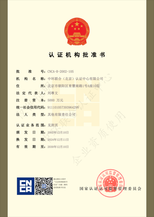 認(rèn)證機構(gòu)批準(zhǔn)證書