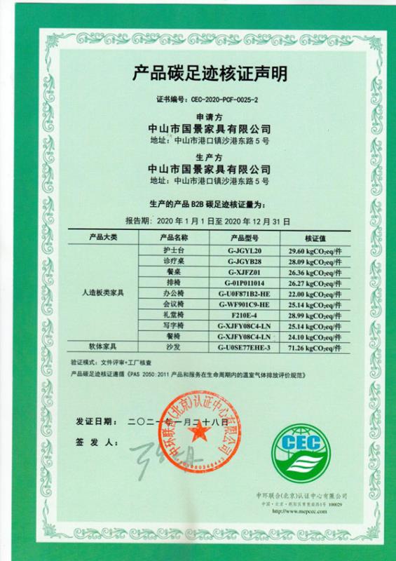 中山市國景家具有限公司-CEC-2020-PCF-0025-2-人造板類家具+軟體家具