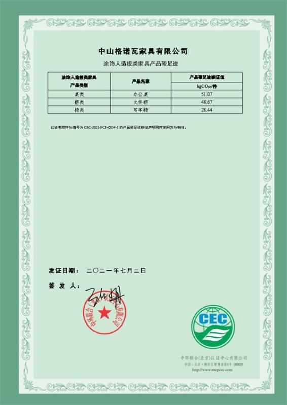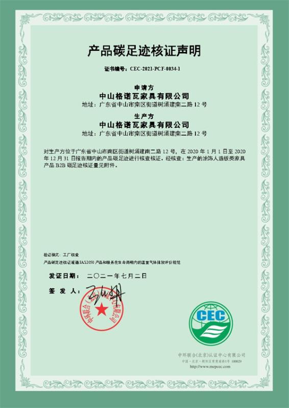 下一篇:中山格諾瓦家具有限公司碳足跡核證聲明-CEC-2021-PCF-0034-2-軟體家具類