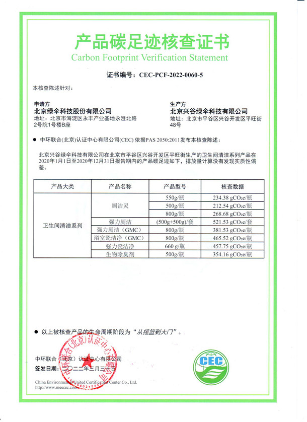 下一篇:北京興谷綠傘科技有限公司-CEC-PCF-2022-0060-4-織物洗滌護理系列
