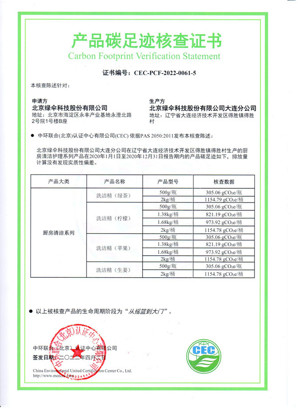 上一篇:北京綠傘科技有限公司大連分公司-CEC-PCF-2022-0061-6-廚房清潔系列