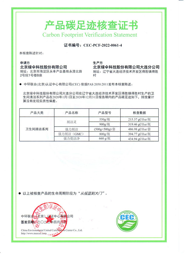 上一篇:北京綠傘科技有限公司大連分公司-CEC-PCF-2022-0061-5-廚房清潔系列