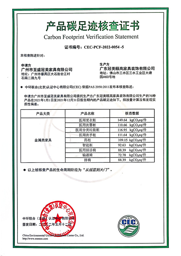 廣東冠美頤高家具裝飾有限公司-CEC-PCF-2022-0054-5-金屬類家具