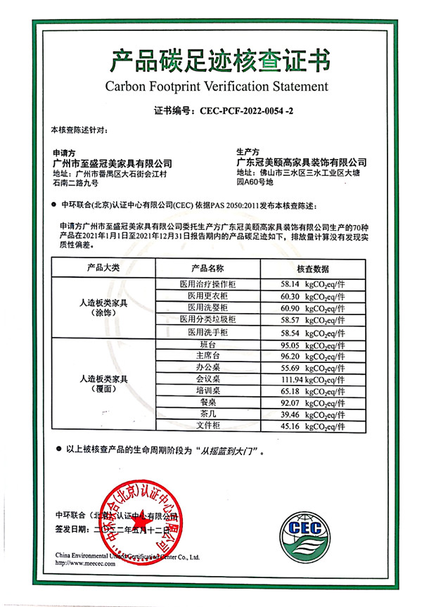 上一篇:廣東冠美頤高家具裝飾有限公司-CEC-PCF-2022-0054-3-人造板類家具(覆面)+鋼木類家具
