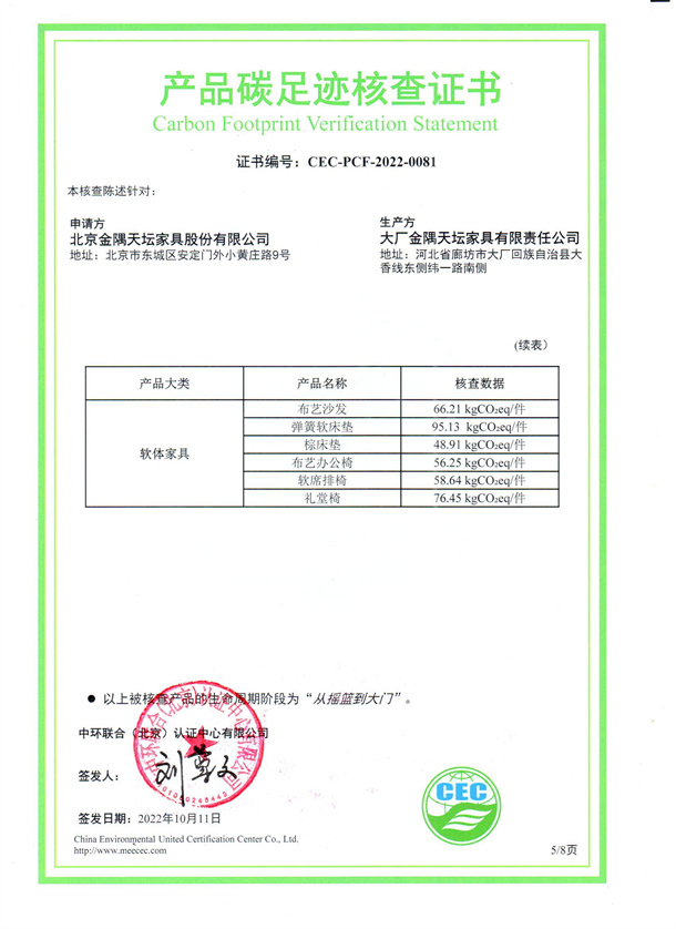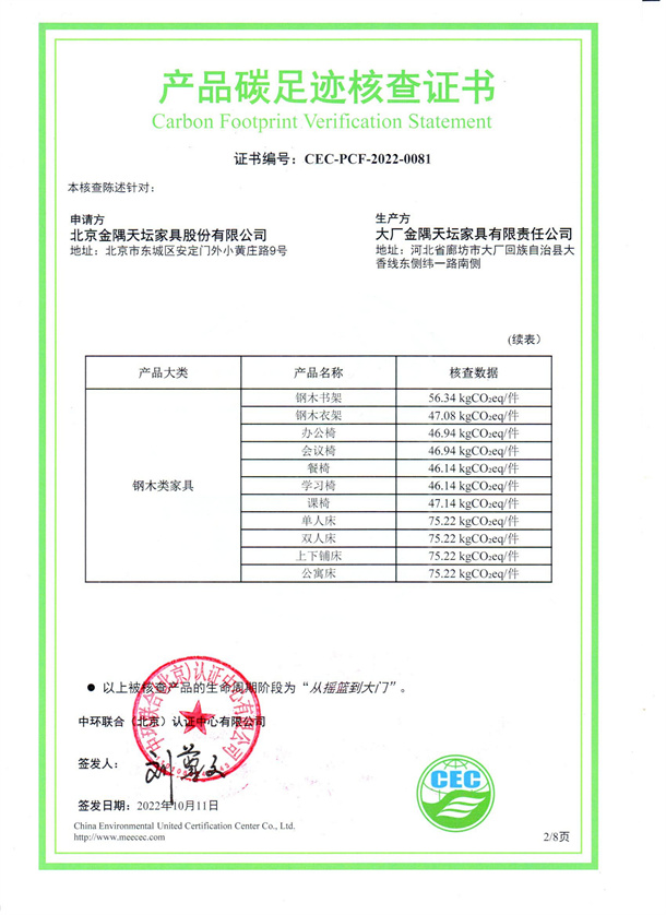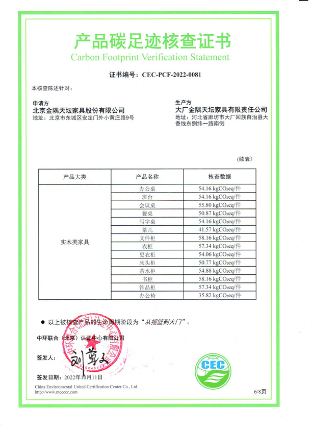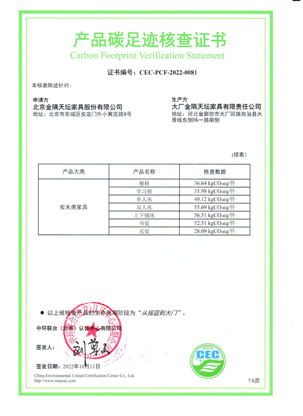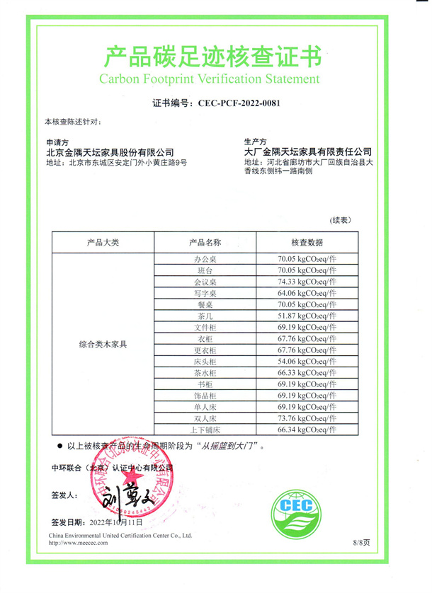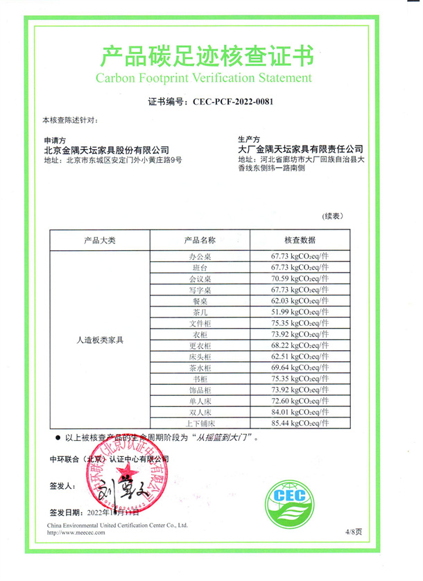 北京金隅天壇家具股份有限公司-CEC-PCF-2022-0081