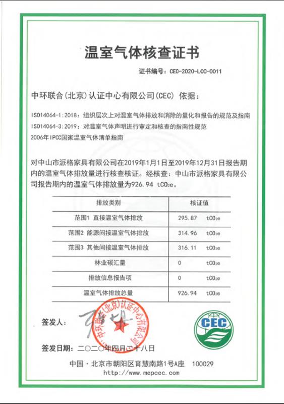 中山市派格家具有限公司 CEC-2020-LCC-0011