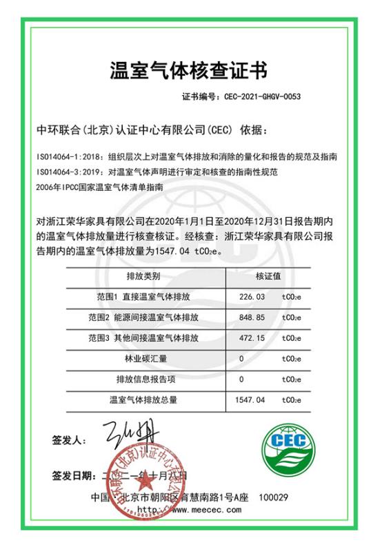 浙江榮華家具有限公司-CEC-2021-GHGV-0053-溫室氣體核查證書