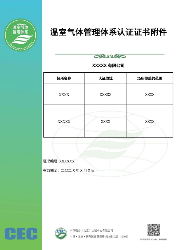 溫室氣體管理體系認證證書模板